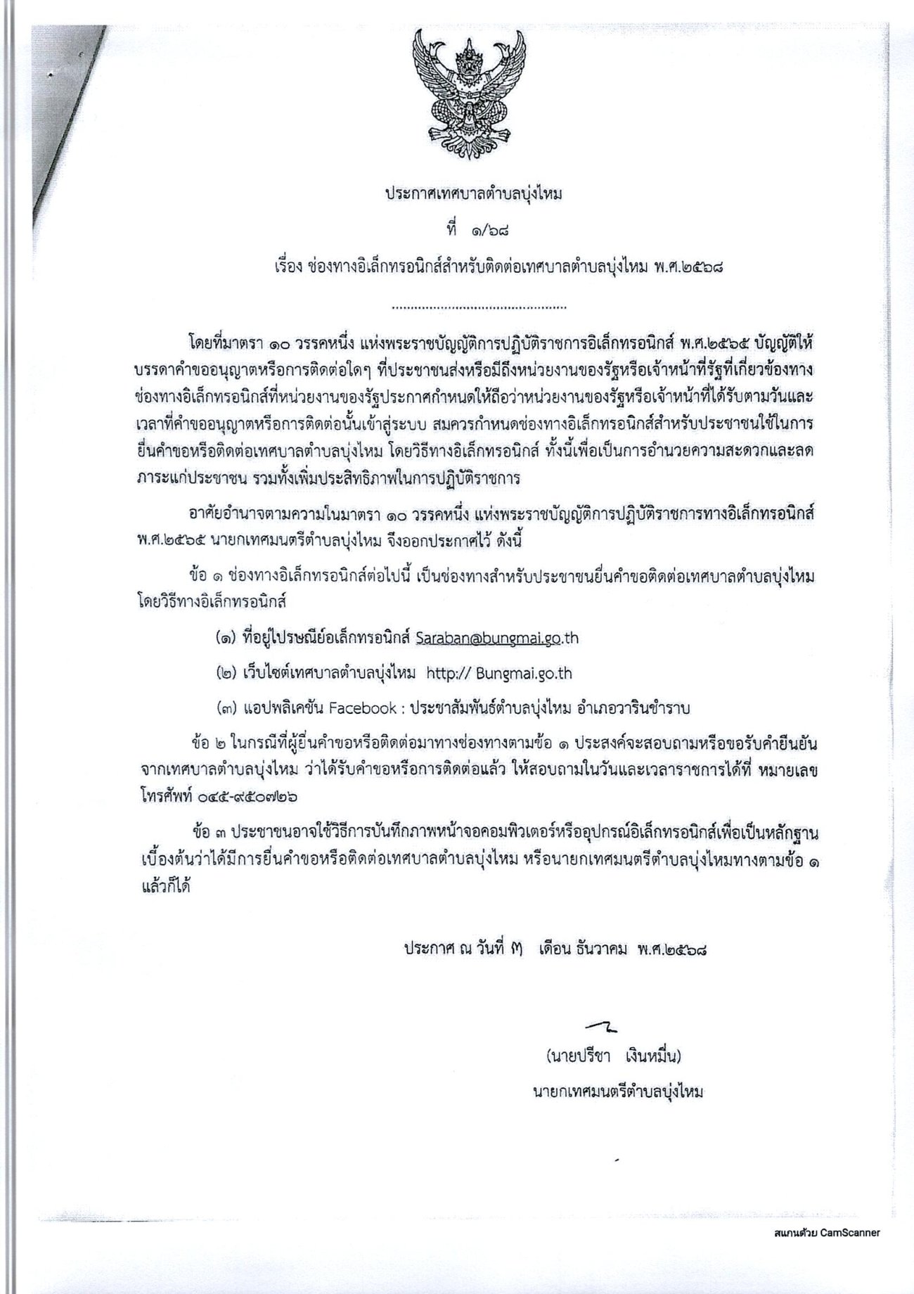 แจ้งประกาศช่องทางอิเล็กทรอนิกส์