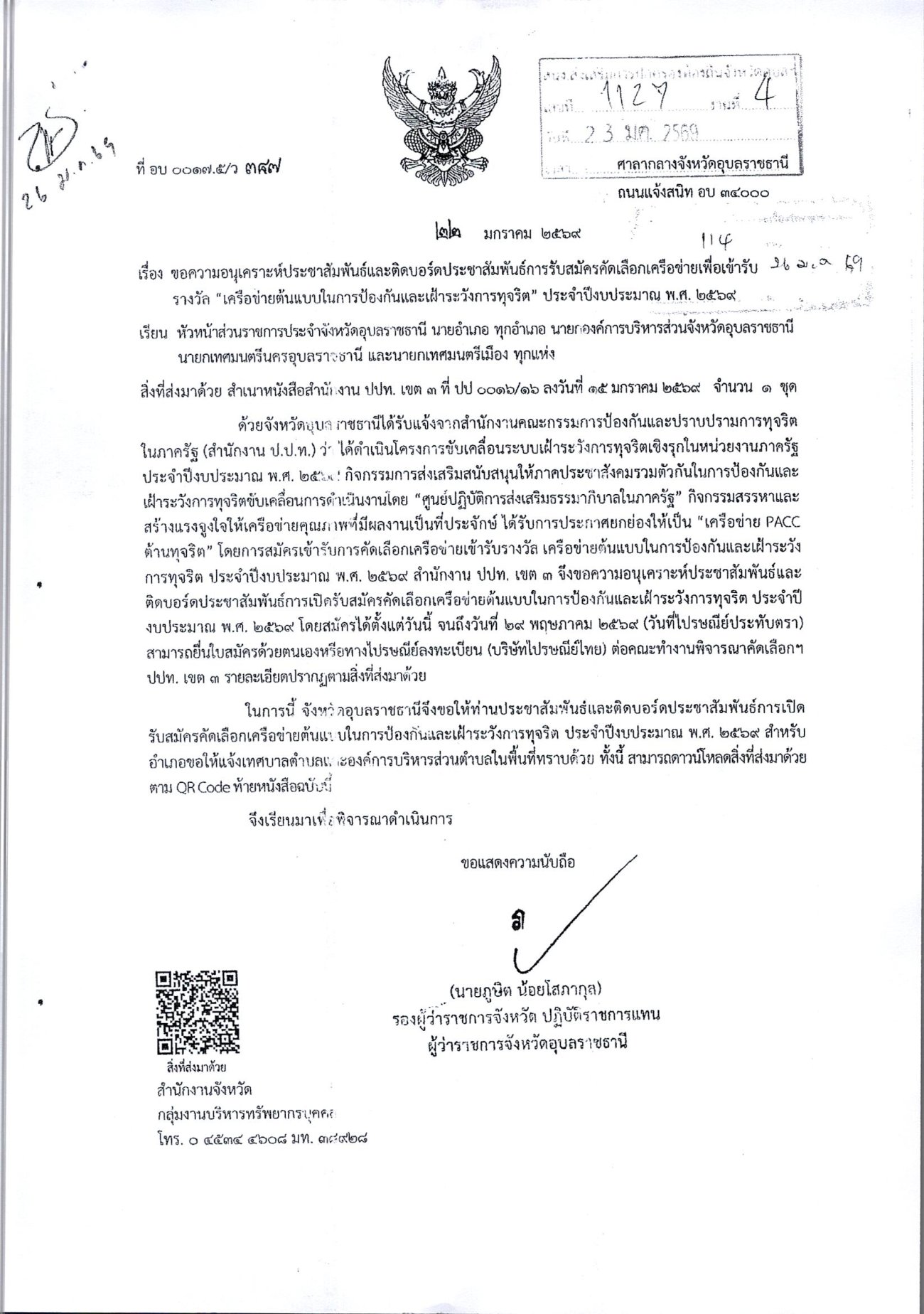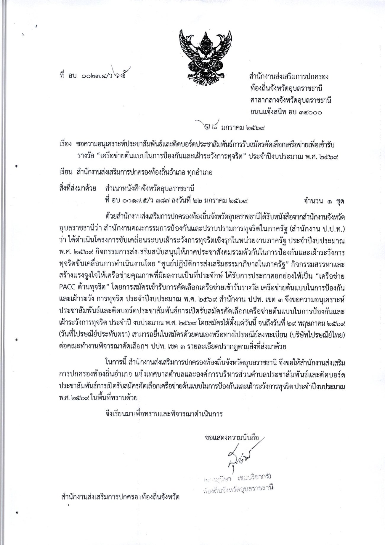 แจ้งประชาสัมพันธ์ การรับสมัครคัดเลือกเครือข่ายเพื่อเข้ารับรางวัล เครือข่ายต้นแบบในการป้องกันแล่ะเฝ้าระวังการทุจริต ประจำปีงบประมาณ 2569
